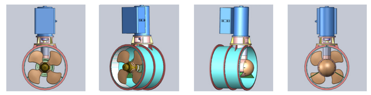 | Type | Max. Propeller Dia.[mm] | Propeller Dia.[mm] | Max. Input power [kW] | Input speed [r/min] | Frequency[Hz] | Max.Thrust[KN] | Propeller Speed [r/min] | Propeller Type |